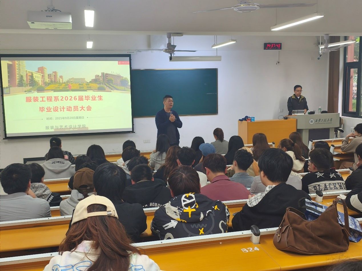 服装工程系于1-103教室召开2026届毕业生毕业设计动员大会。服装工程系部分教师及 2022 级服工成衣 1-2 班、卓越 1-2 班的全体同学共同参与了本次会议。