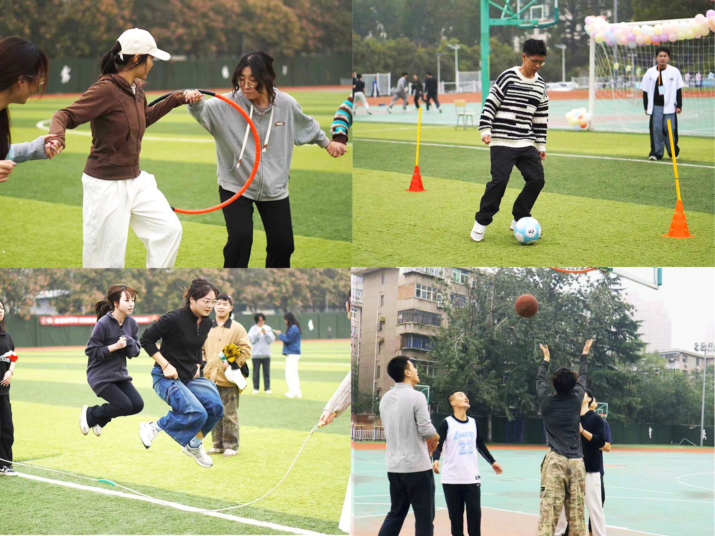 本次趣味运动会同时设置师生篮球赛。赛场上,师生们以饱满的热情和昂扬的斗志投入比赛,彰显了团队合作的默契默契和顽强拼搏的体育精神。