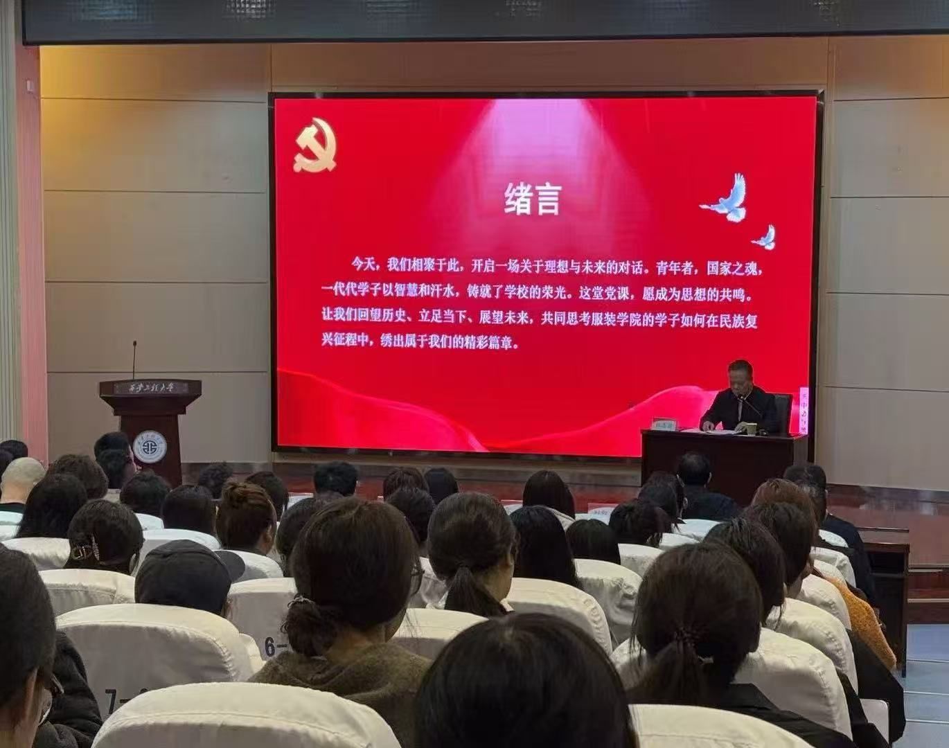 张志昌在专题党课中系统回顾了“十四五”期间我国在经济发展、科技创新、产业体系、绿色转型、民生福祉等多个领域取得的辉煌成就,深刻阐释了“马克思主义为什么‘行’”“中国共产党为什么‘能’”和“中国特色社会主义为什么‘好’”等核心问题。解读了“十五五”时期的国家发展目标与高校所肩负的时代重任,生动讲述姚穆院士“心怀家国、严谨治学”的教育家、科学家精神,紧密结合服装行业向“科技、文化、可持续”发展的变革趋势,指出全体师生要将个人成长成才融入国家产业和行业发展大局。提出“立青云之志、走实干之路、守创新之魂、修尚美之德”四点希望,号召大家传承学校优良办学传统和大学精神,为服务强国建设、民族复兴伟业贡献力量。
