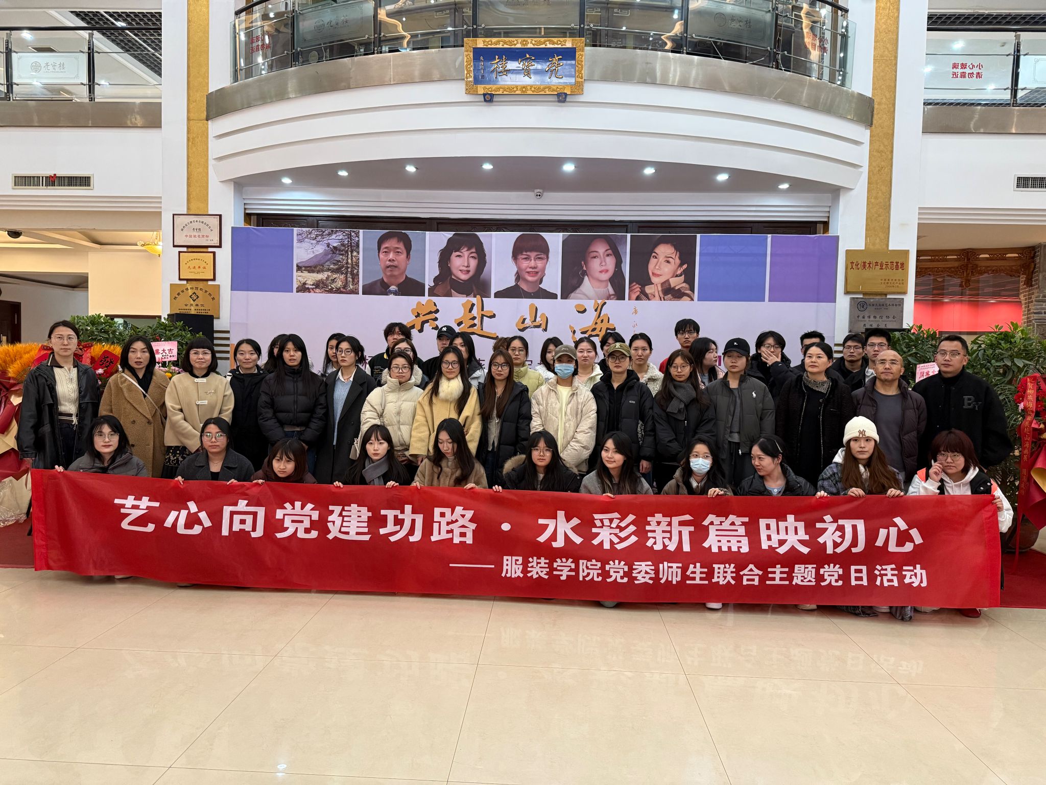 党委组织本科生造型党支部、研究生机械、美术学党支部、教师造型艺术系党支部共50余名师生党员,赴陕西省亮宝楼艺术馆开展“艺心向党建功路·水彩新篇映初心”主题党日活动,集体观摩“共赴山海——杨毅柳、曾军梅等五人水彩新作精品展”。