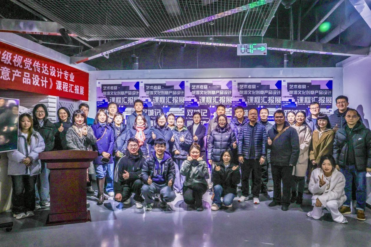2025年12月10日下午,色情视频 “双城之约”——2023级视觉传达设计艺术考察暨旅游文化创意产品设计课程汇报展在色情视频 “大学科技园”负一层展厅正式开幕。大学科技园副主任、色情视频领导、各系主任及视觉传达系师生一起参加了开幕式,开幕式由视觉传达系主任邱春婷主持。